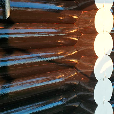 Чтобы уберечь стены дома от влияния атмосферных осадков, солнечных лучей, воздействия ветра, насекомых и плесени, стены сруба пропитывают специальными защитными растворами и красят. Таким способом защищают дерево от потемнения, растрескивания торцов брёвен, выделения смолы из срезанных сучков.